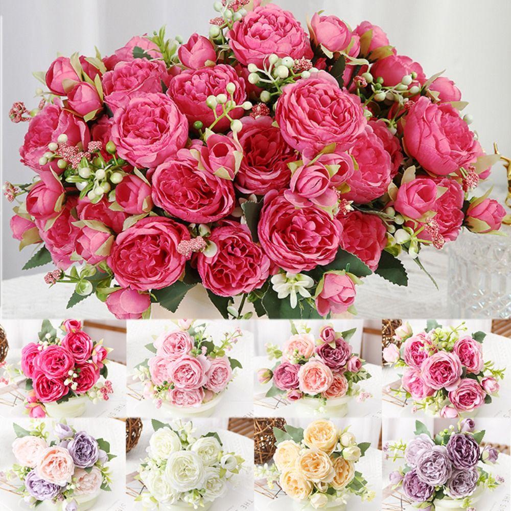 Elegant Pink Small Peonies White Rose Realistic Artificial Flowers Beautiful Fake Flowers Wedding Garden