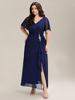 Ever-Pretty Women's Plus Size Formal Dress Short Sleeve Ruffled Deep-V Neck Chiffon Slit Mother of the Bride Dress with Rhinestone-Embellished