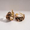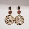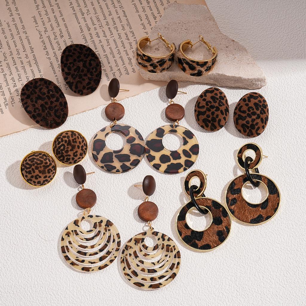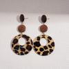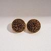 Maillard Flocking Leopard Print Hollow Round Silver Needle Earrings Autumn and Winter Geometric Fashion Earrings
