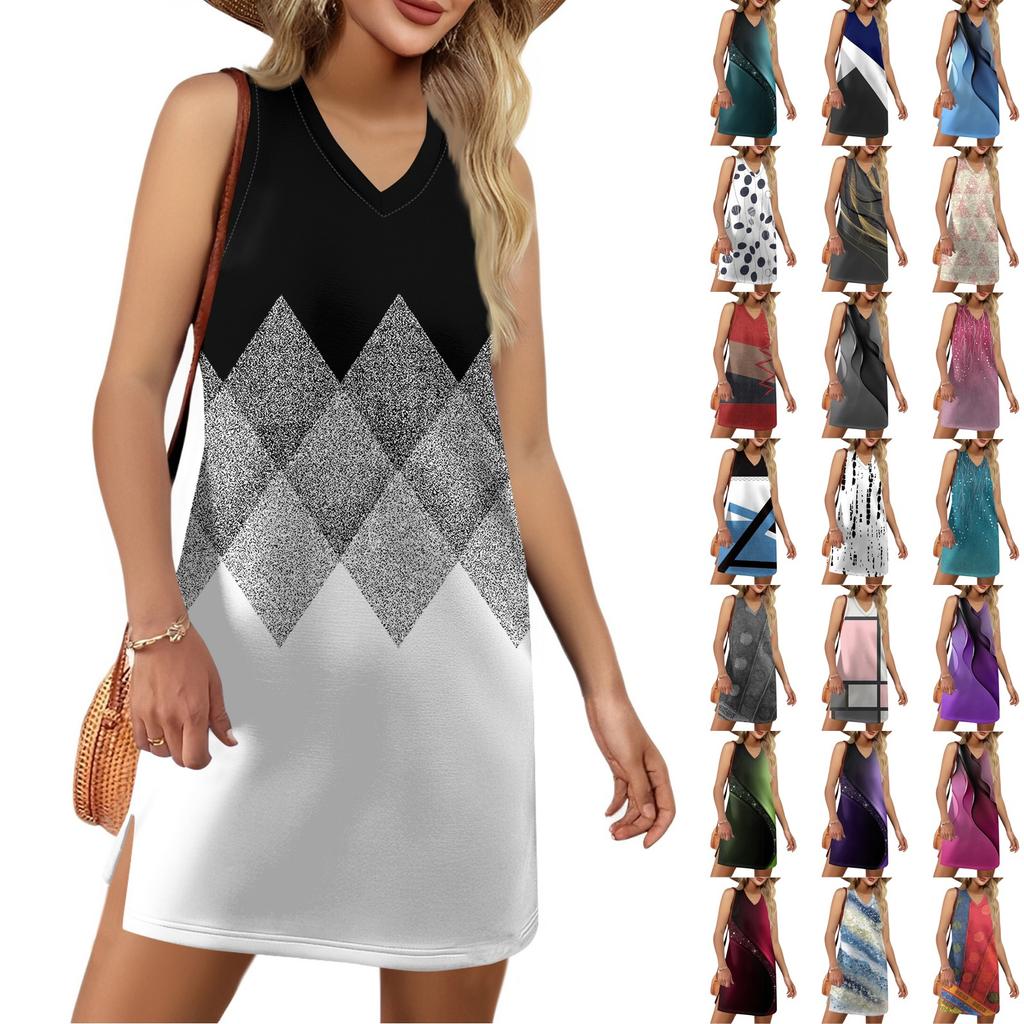 Women's V-neck Summer Casual Beach Vacation Women's Sleeveless Color Block Patchwork Print Sundress