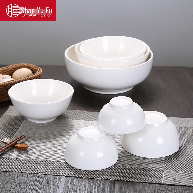 These elegant white ceramic bowls are perfect for serving rice, porridge, soup, or noodles. Designed with a classic Chinese style, they are ideal for both home use and commercial settings like restaurants and hotels, offering durability and a timeless aesthetic.