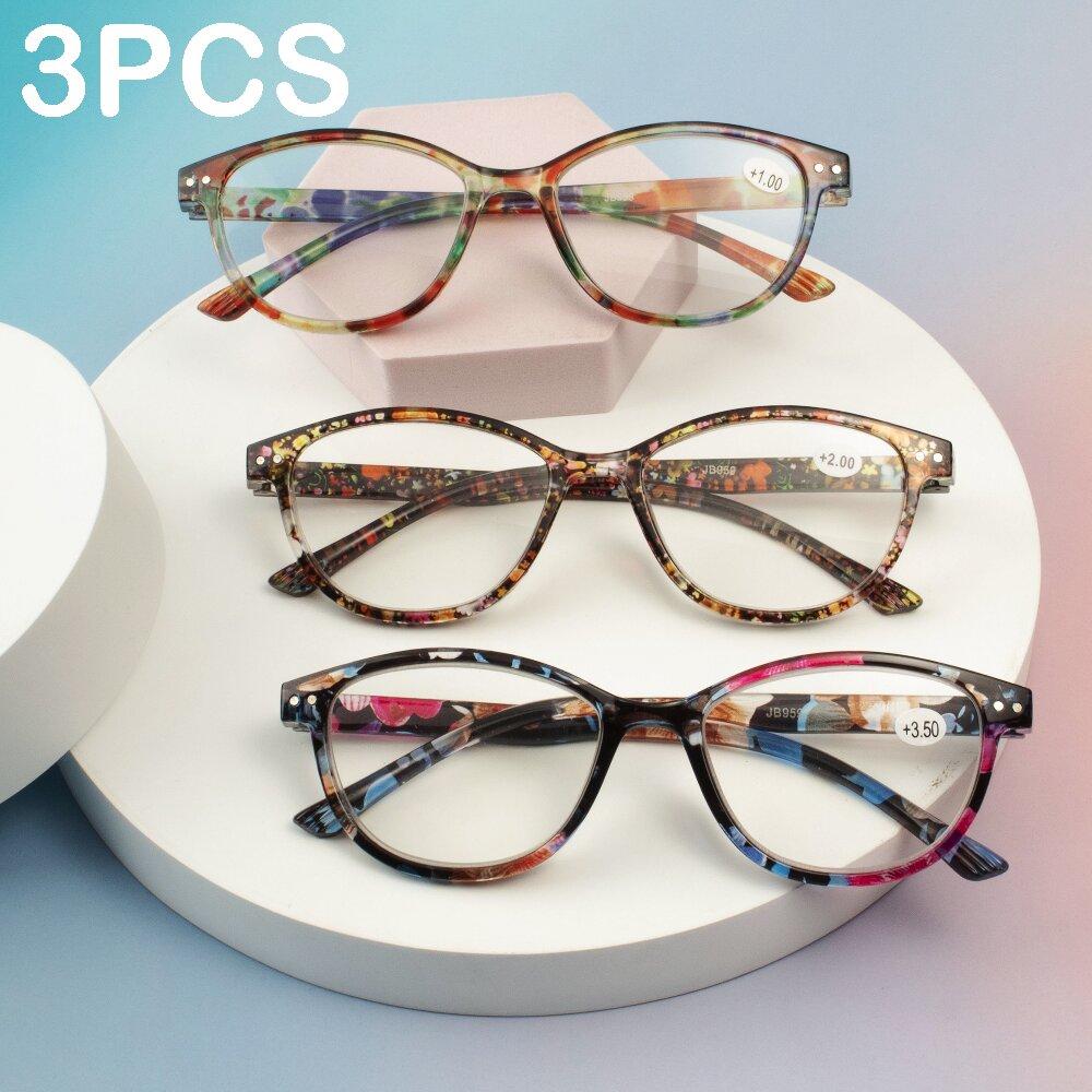 3PCS Reading Glasses For Women Personality Cat Eye Reader Rivet Decorative Frame Amplifier For Presbyopic glasses Fashion Ladies
