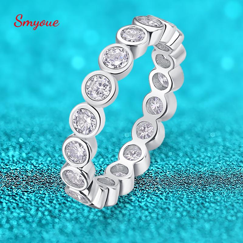 Smyoue 3mm D Color Bubble Full Moissanite Ring for Women 100% 925 Solid Silver Plated 18k Gold Wedding Engagement Eternity Band