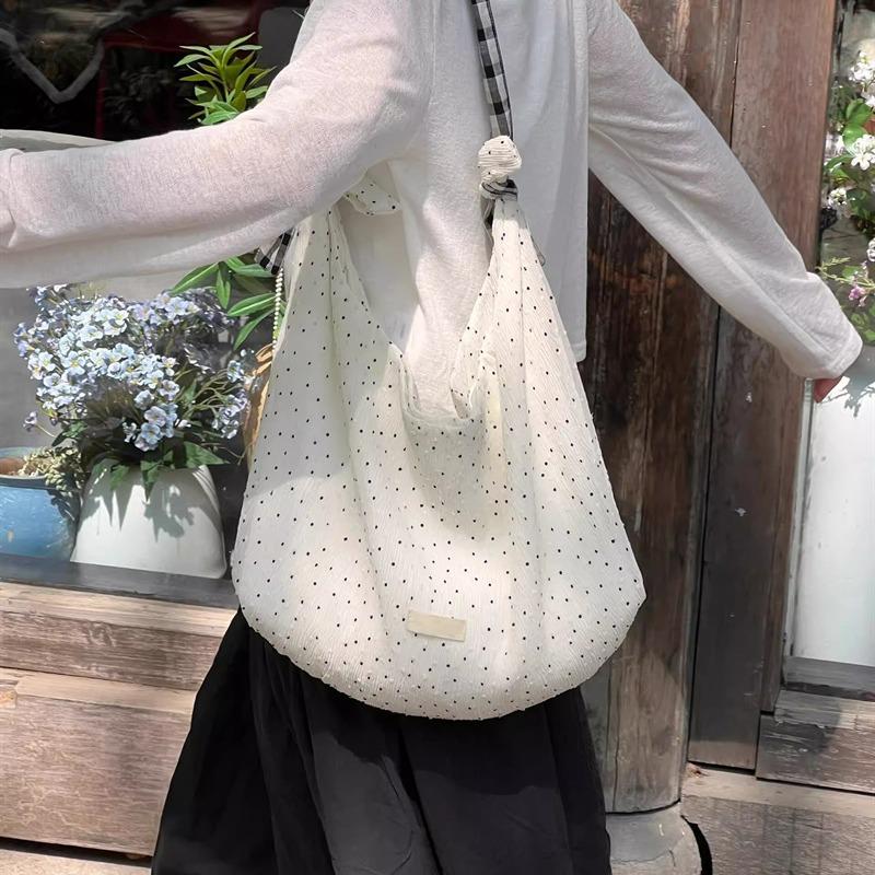 Mori polka dot canvas bag female niche design literary style small fresh commuter tote bag cute girl shoulder bag