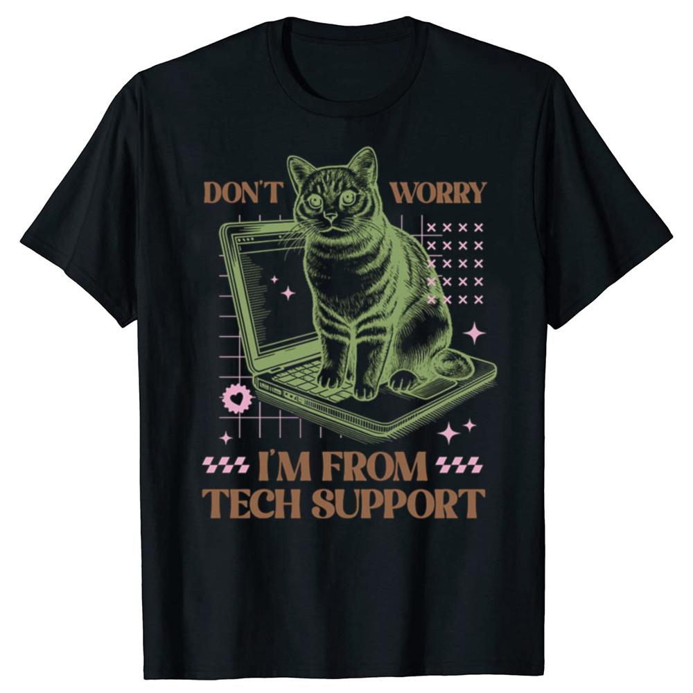 Funny Dont Worry Im From Tech Support Cat Computer Mouse T Shirts Gifts Mens Clothing Fashion Casual Loose Oversized T Shirt
