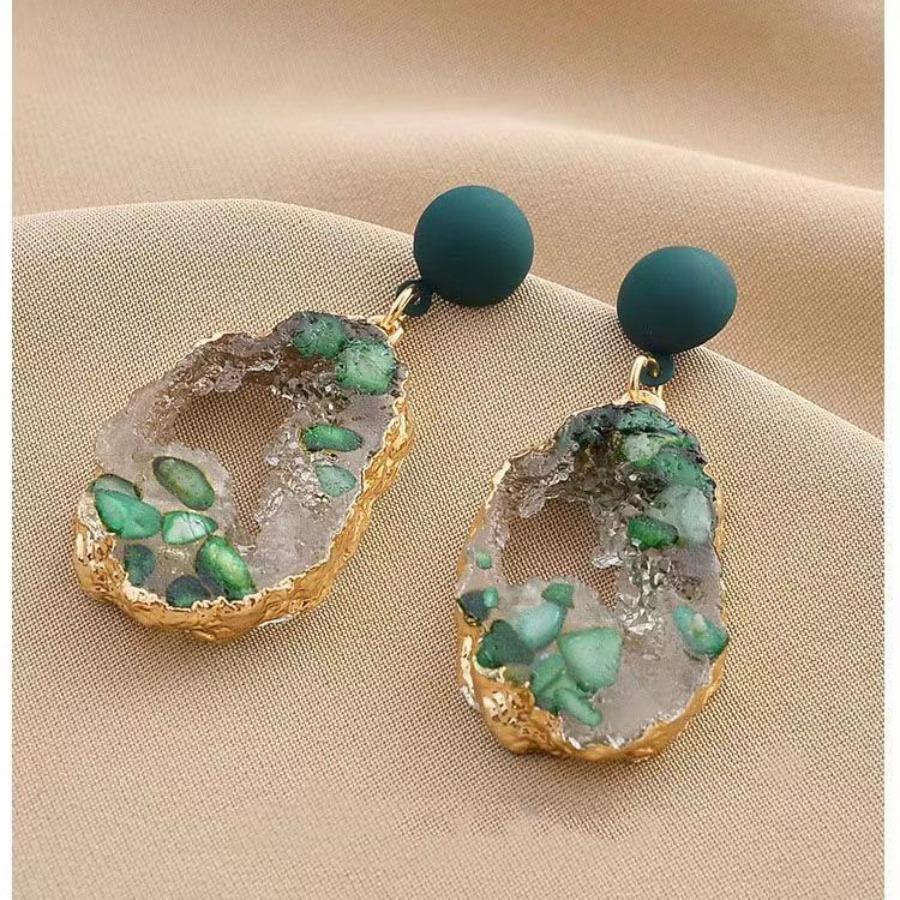JMXD-Retro Court Style Exaggerated Green Resin Niche Beaded Temperament Women's Earrings, Earrings, Earrings