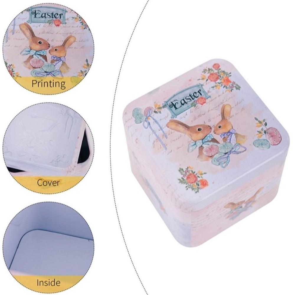 Multi-Purpose Cartoon Easter Tinplate Box Metal Portable Rabbits Candy Box with Lids Vintage Storage Box Sweets Chocolate