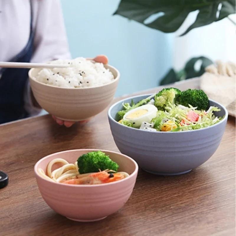 2 Size Round Wheat Straw Bowl Anti-fall Soup Bowls Children Japanese Bowl Sets for Noodles Snack Beauty Table Accessories