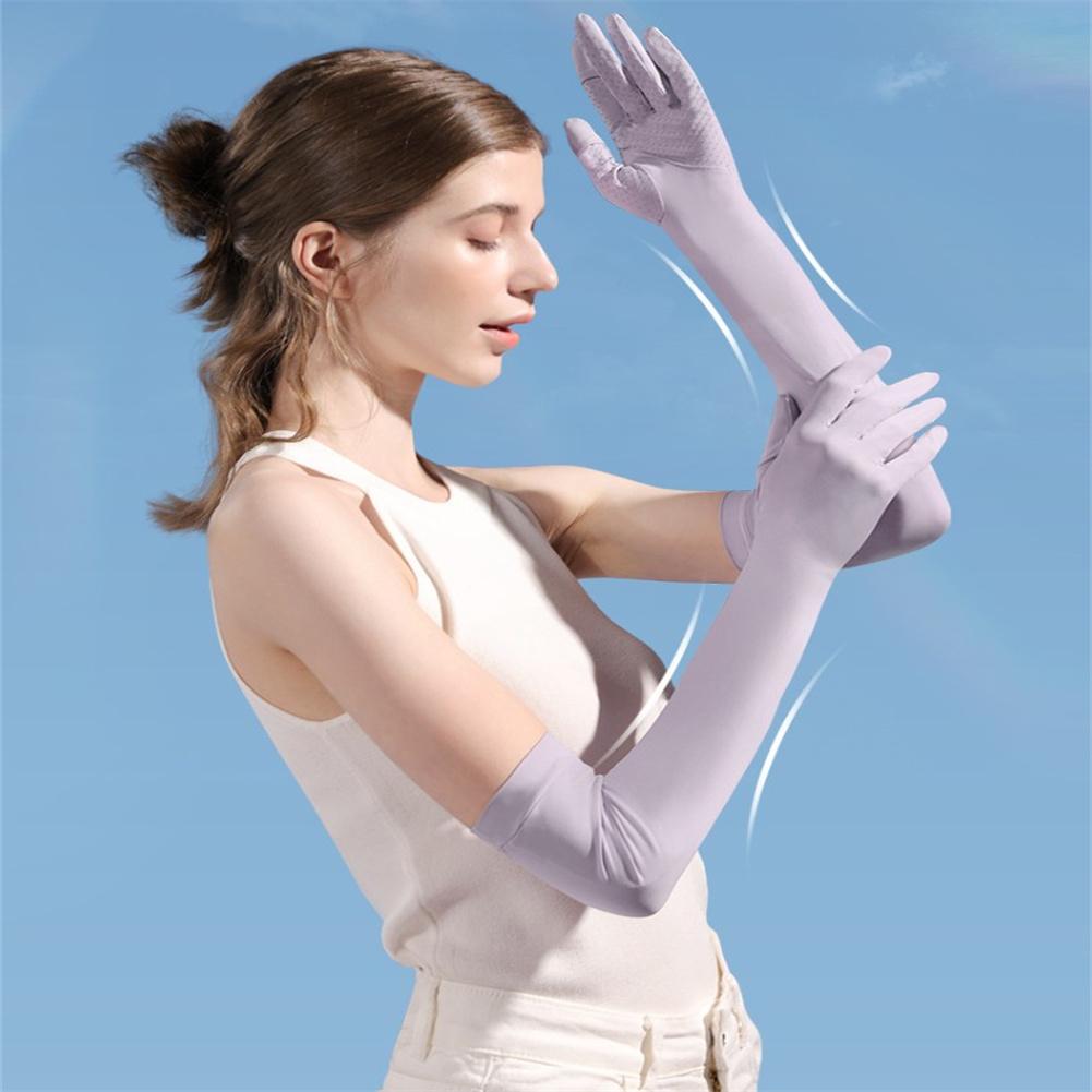 1 Pair Open Fingered Sunscreen Gloves Summer Ice Silk Outdoor Cycling Non-slip Breathable Long Sunshade Sleeves