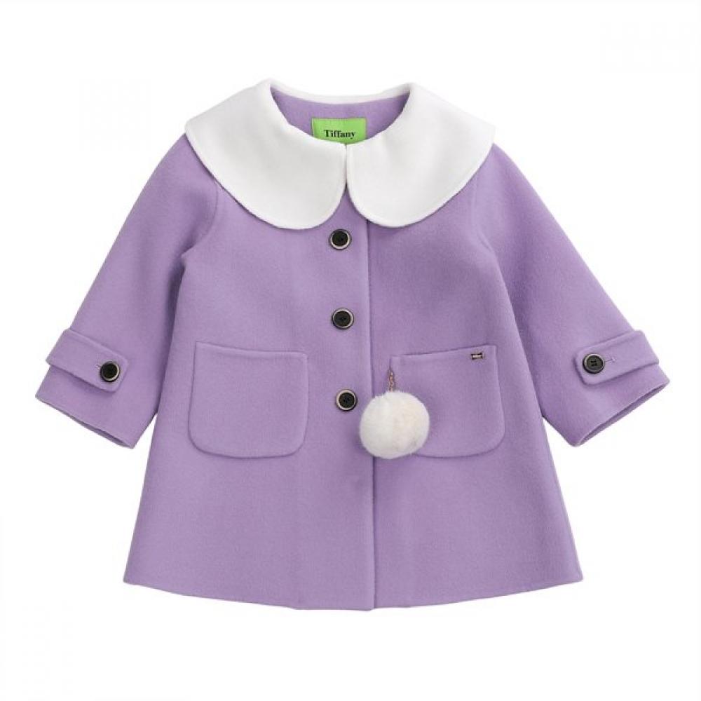 The Purple Handmade Coat is an upscale handmade item crafted in a luxurious light purple color. The contrasting ivory big collar and detachable fur pom-pom decoration are key features, making it a perfect match for dresses or skirts.