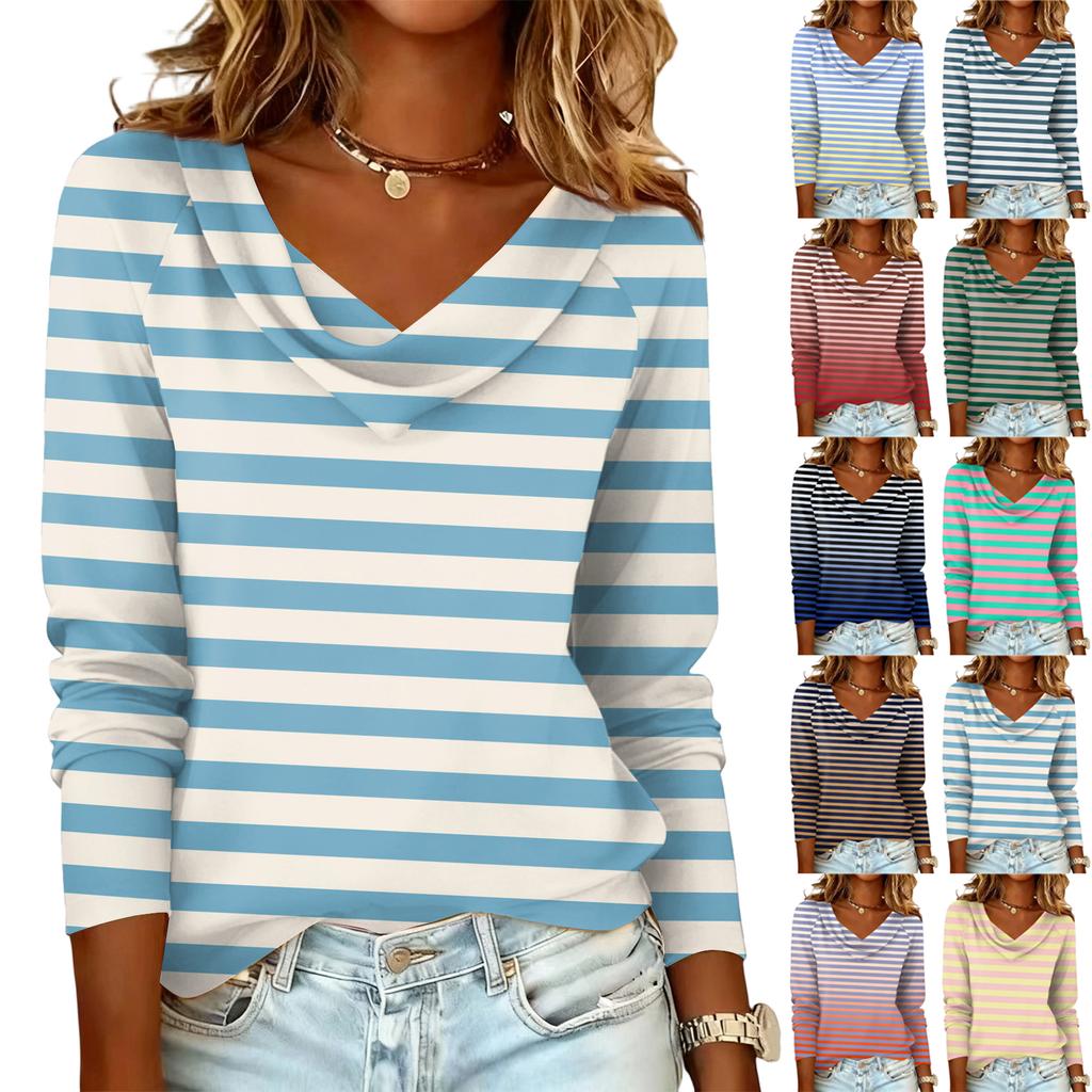 Ladies' striped printed casual and fashionable long sleeved pullover top