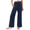 Women Elastic High Waist Pant Casual Fit Wide Leg Long Pants Trousers With Pockets