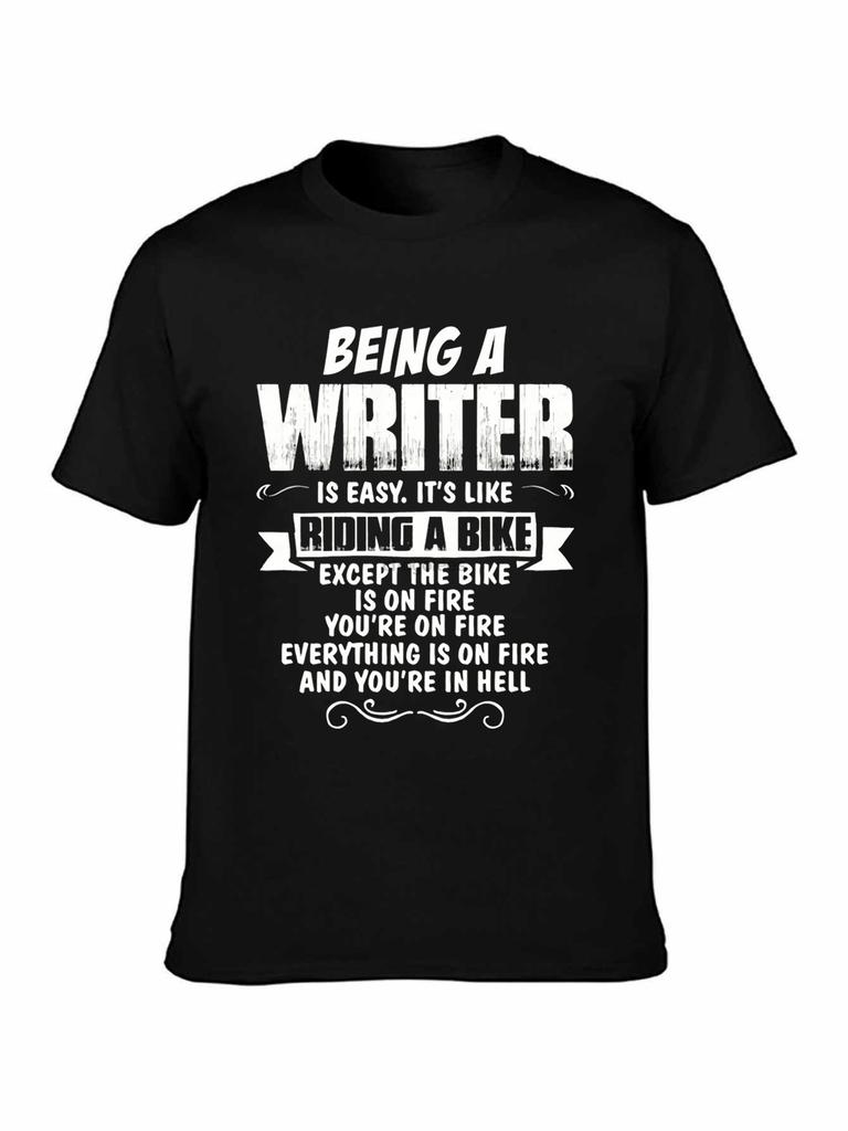 Brand Being A Writer Is Easy It Like Riding A Bike Except The Bike Is On Fire TSHIRT Men Short Sleeve TShirt