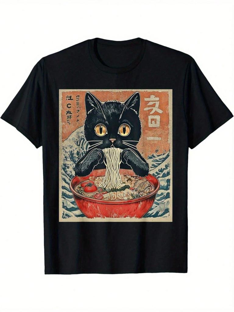 Kawaii Cat Ramen Anime Pattern TShirt Mens Soft Cotton Short Sleeve Crew Neck Perfect Gift Ideas Japanese Style