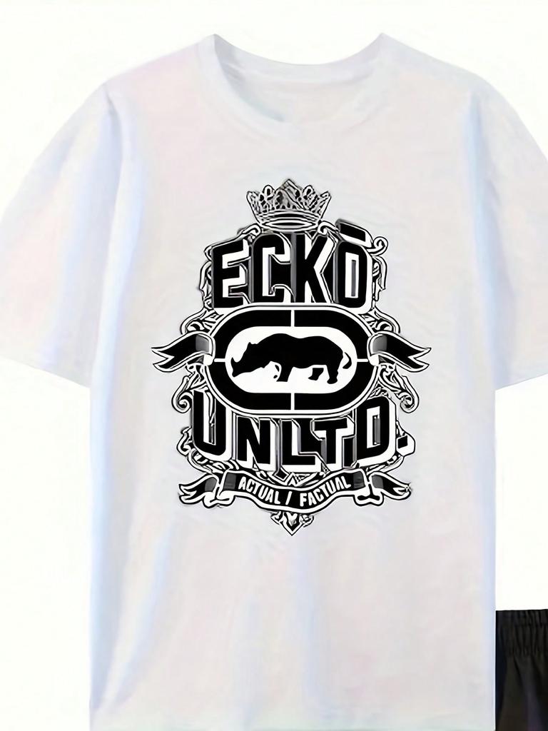 Mens Premium Heavy Cotton TShirt Made in USA Soft Breathable Loose Fit Short Sleeve with Elephant EKKO UNITO Graphic Print
