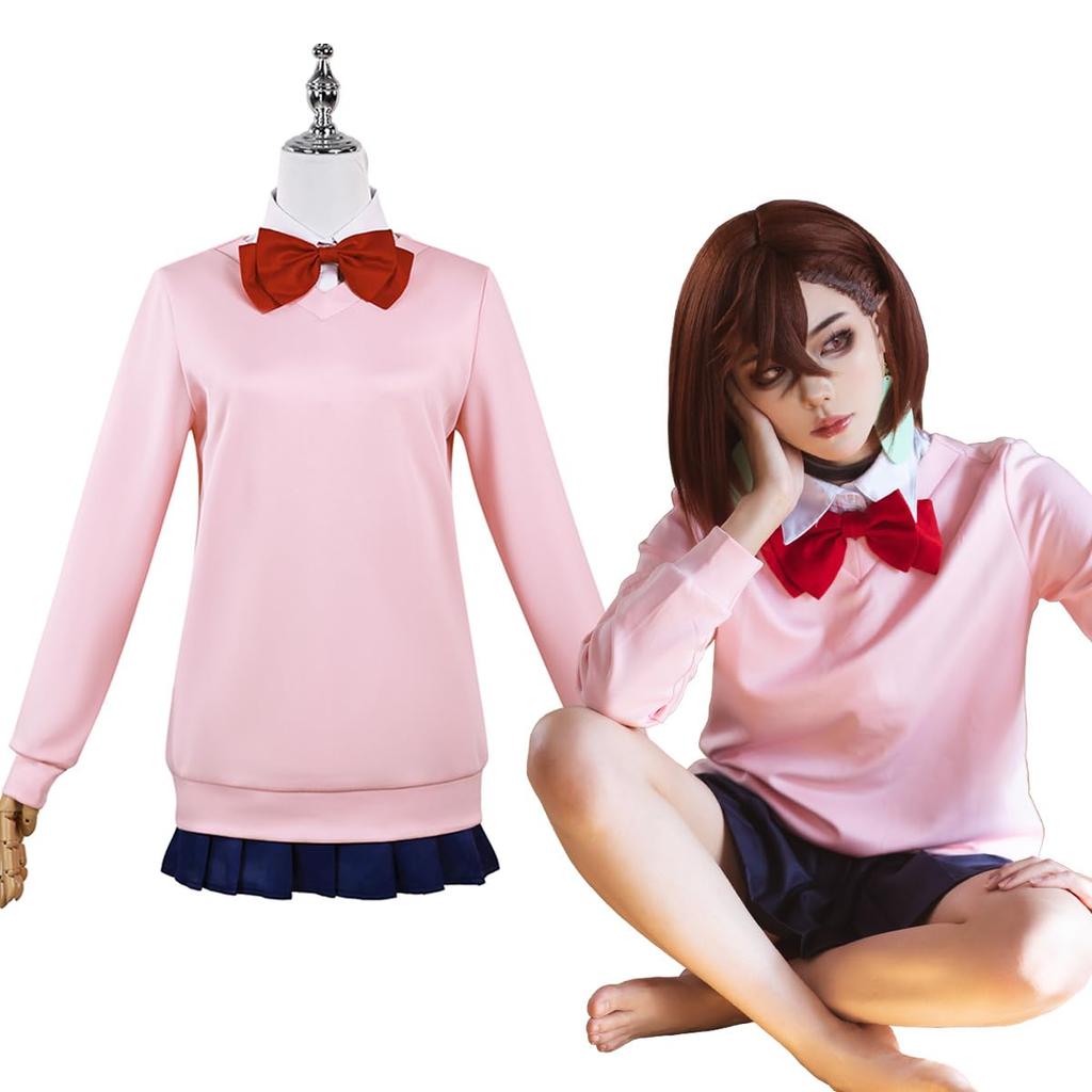 NIUKACOS Dandadan Ayase Momo Cosplay Includes and Bow Costume for Photo and Size M Costume, Top, Shirt, Skirt, Socks, Earrings, Tie, Anime/Manga