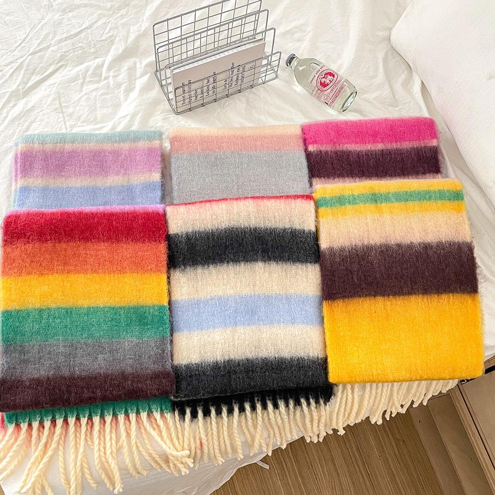 New Rainbow Winter Thickened Warm Scarf For Children Girls Student New Patchwork Color Tassel Scarves Soft Shawl Wrap Shawls