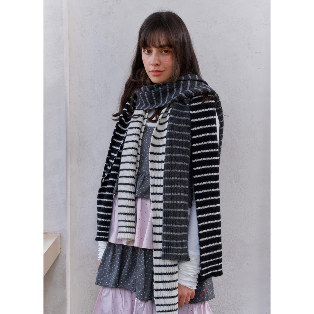 A Simple Color-Blocked Striped Knitted Wool Scarf For Autumn And Winter Soft And Versatile Pure Wool Neck Warmer For Women