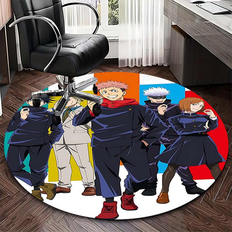 1pc Anime Cartoon Design Round Carpet Office Chair Mat, NonSlip Rug for Home Decor