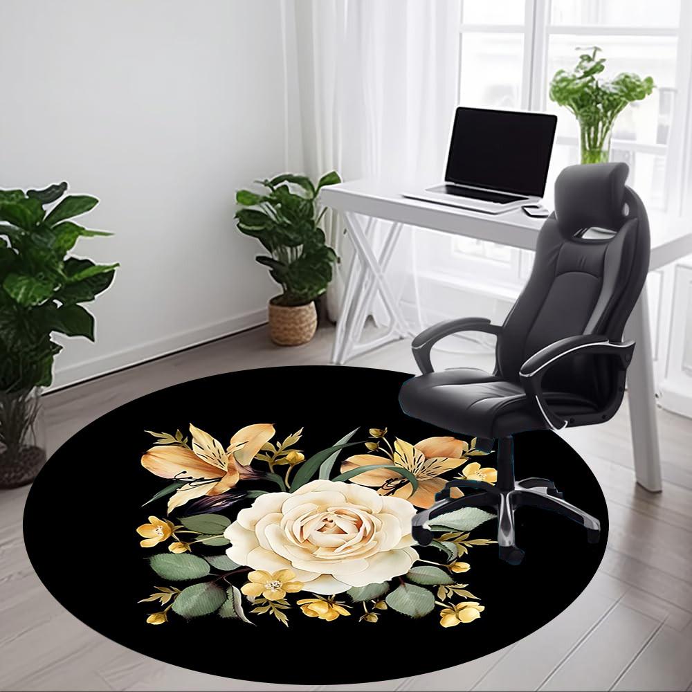 1pc Cream Rose Arrangement Chair Carpet for Office, Round Non-Slip Durable Large Size Office Carpet, Suitable for Office, Beautiful Decoration