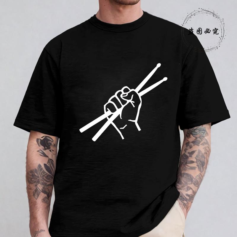 Mens T Shirt Drummer Drumsticks Graphic Y2k Tops Summer Short Sleeve Tees Harajuku Streetwear Unisex TShirt Women Clothing