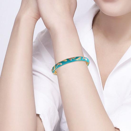 Vintage Cloisonne Bangle Hollow Out Engraved Floral Enamel Retro Ethnic Style Smooth Rhinestone Decor Triple Protection Magnetic Ring Bracelet