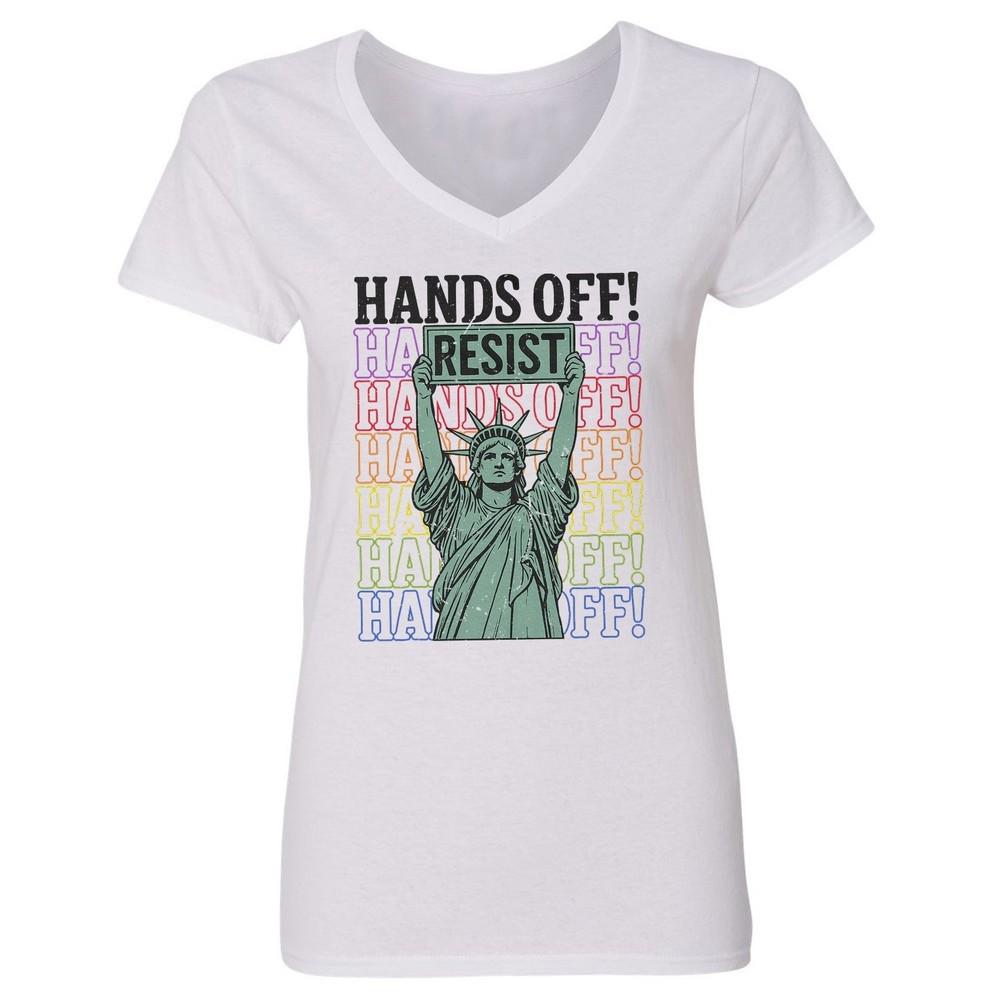 Hands Off Resist Protest - Liberty Statue Sign Ladies' V-Neck Tshirt Unisex T-Shirt