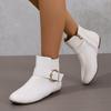 Autumn new large buckle side zipper flat bottom low top European and American versatile women's boots fashionable and comfortable short boots
