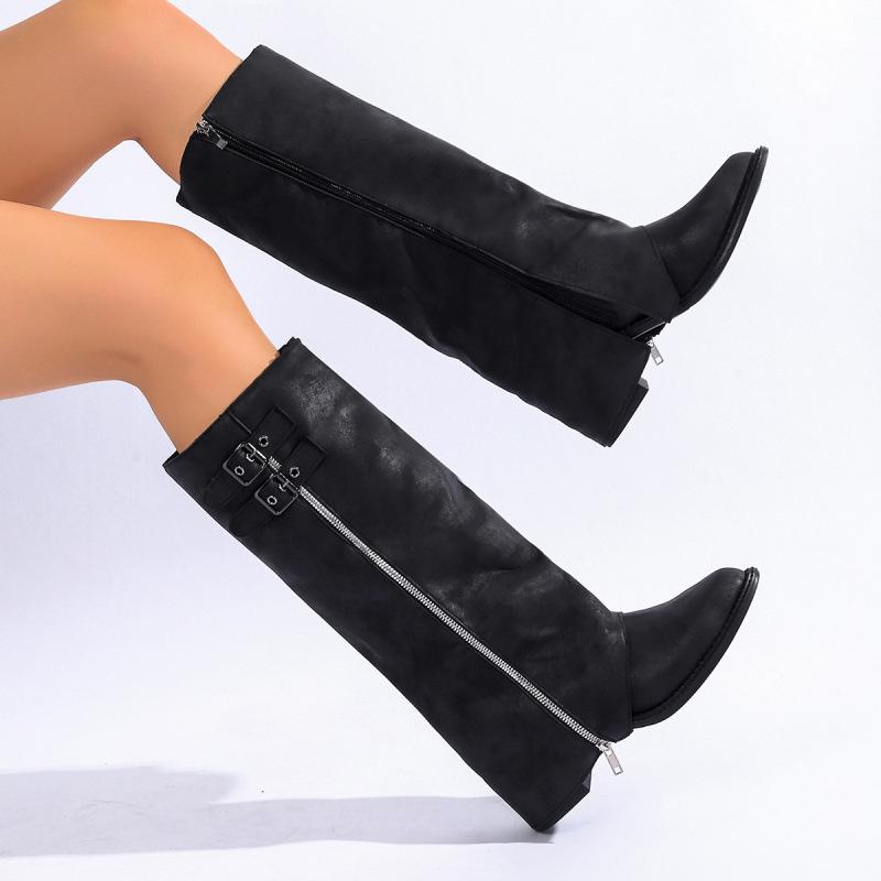Pointed retro belt buckle high-heeled trouser boots autumn new large-size side zipper cowboy boots