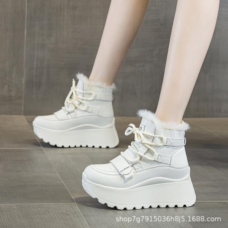 Thick-soled inner heightening women's shoes CM snow boots winter new velvet thickened warm non-slip white short boots