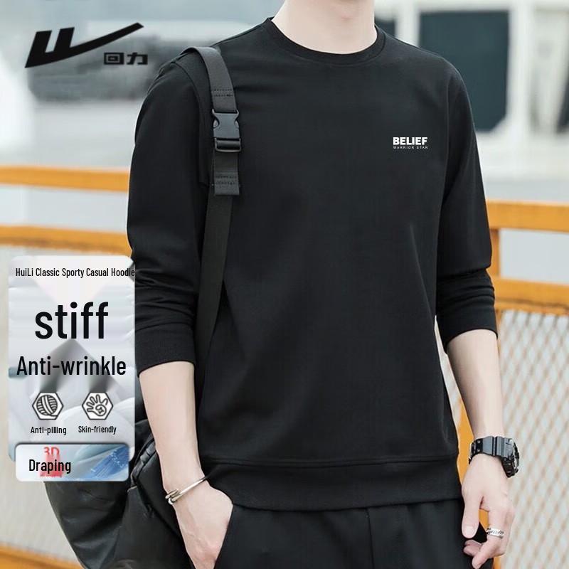 This Warrior men's long-sleeve, round neck pullover sweatshirt is designed for casual wear, sports, running, and fitness activities. Crafted from a comfortable blend of cotton, polyester, and spandex, it features a simple design with a prominent brand logo, making it suitable for autumn and year-round comfort.