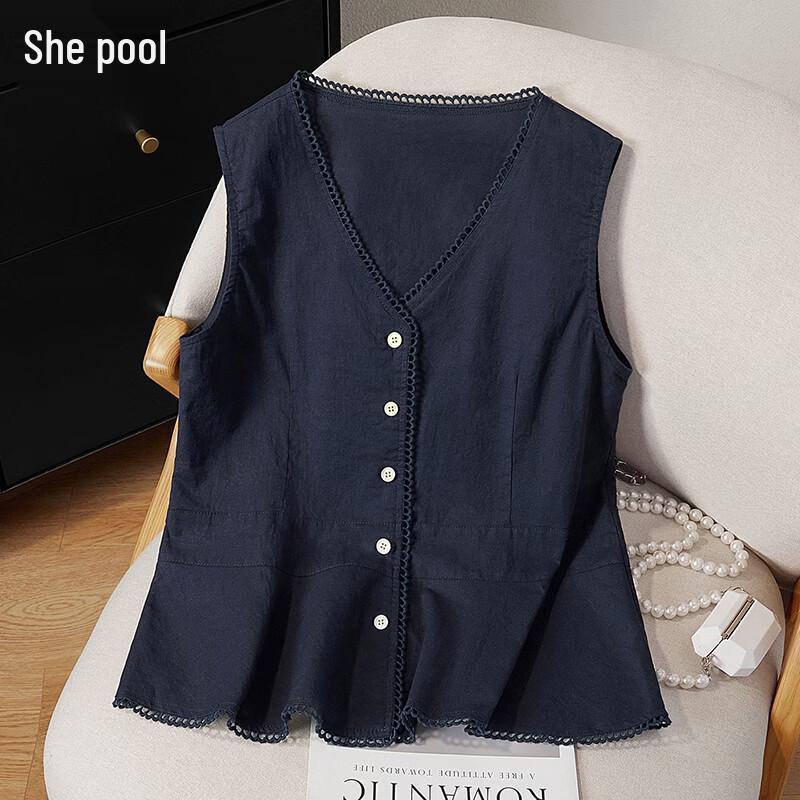 Women's V-Neck Linen Blend Ruffle Hem Vest