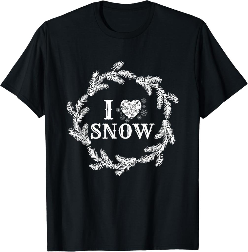 I Love Snow Wreath Winter Snowflake Graphic TShirt Casual Short Sleeve Tee