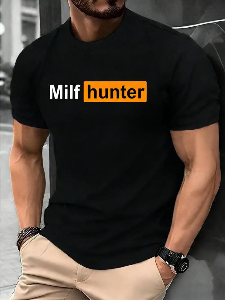 SpringSummer MILF Hunter Fun Pattern Letter Printed Cotton Mens Womens Tshirt Fashion Casual Short Sleeve Round Neck Tshirt