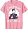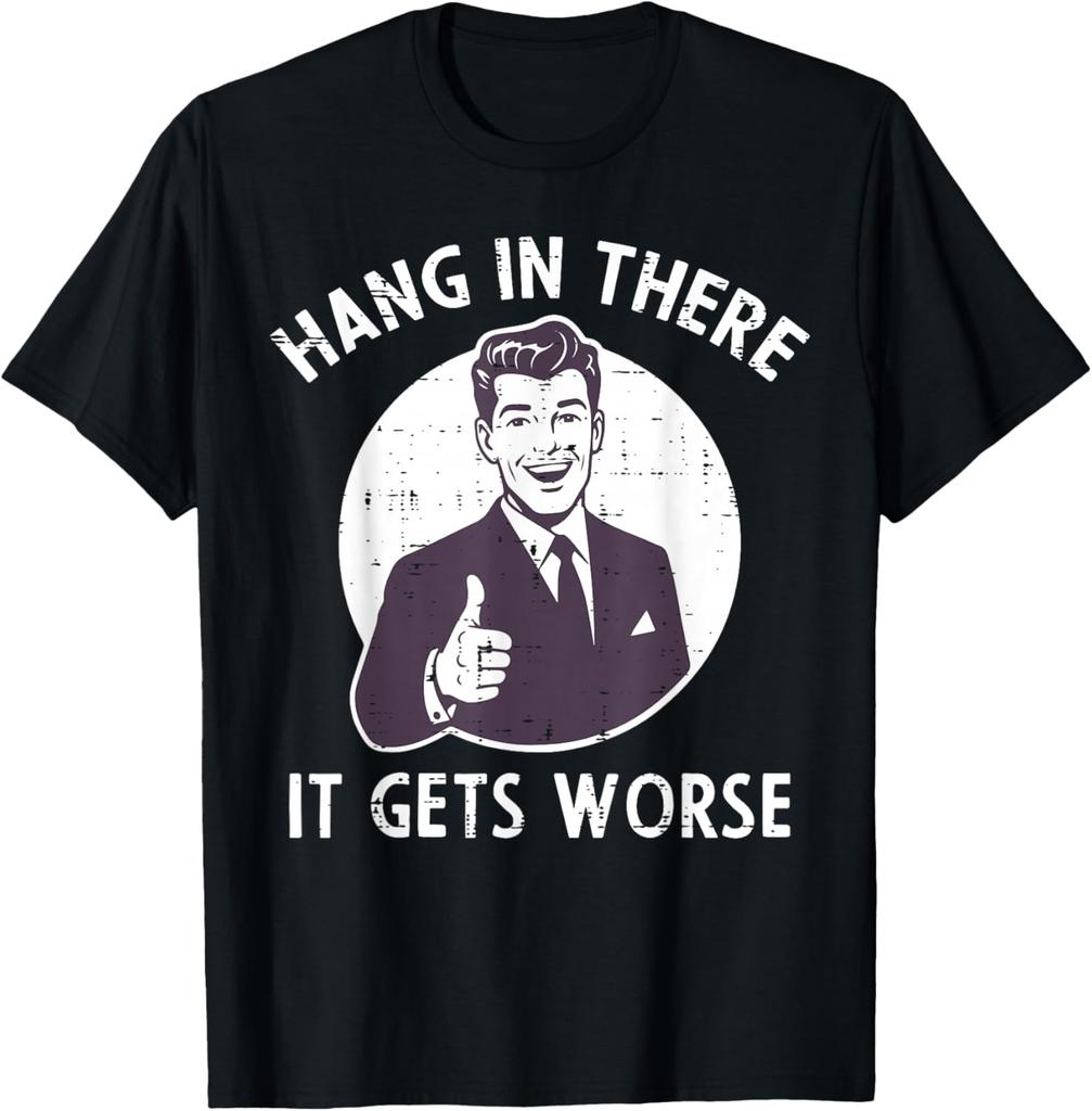 Hang In There It Gets Worse Sarcastic Retro Man Thumbs Up Graphic Tee Shirt Casual Cotton Crewneck TShirt
