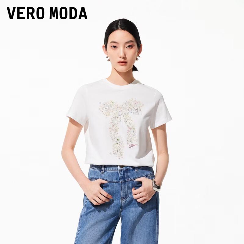 This VEROMODA women's T-shirt is a stylish and versatile choice for summer. Made from 100% pure cotton, it features a comfortable regular fit, a classic round neck, and eye-catching prints including bows and floral patterns. The short-sleeved design makes it perfect for everyday wear.