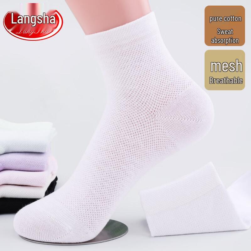 LangSha Women's Mid-Tube Mesh Cotton Socks (6 Pairs)
