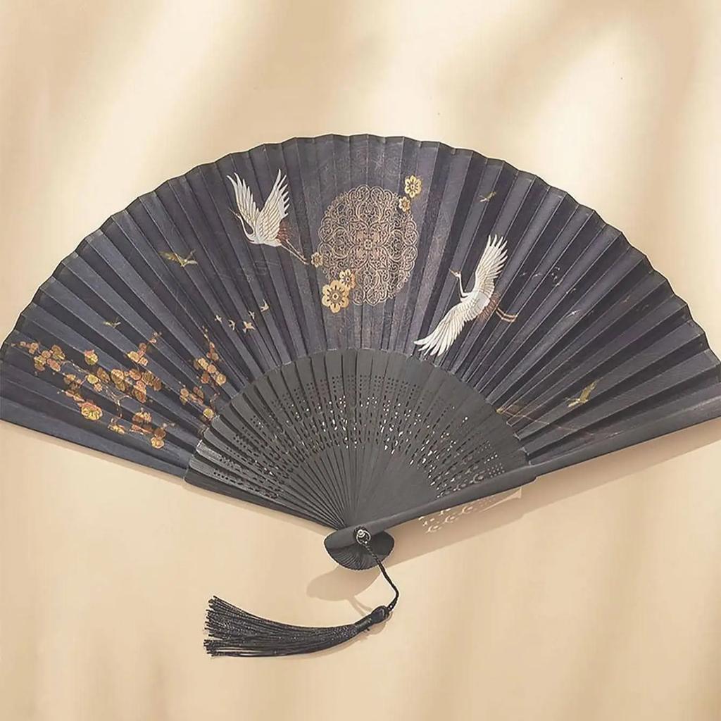 1pc-Chinese Vintage Style Folding Fan Silk Handheld Fan Foldable Bamboo Framed Decorative Folding Fans for Wedding Party