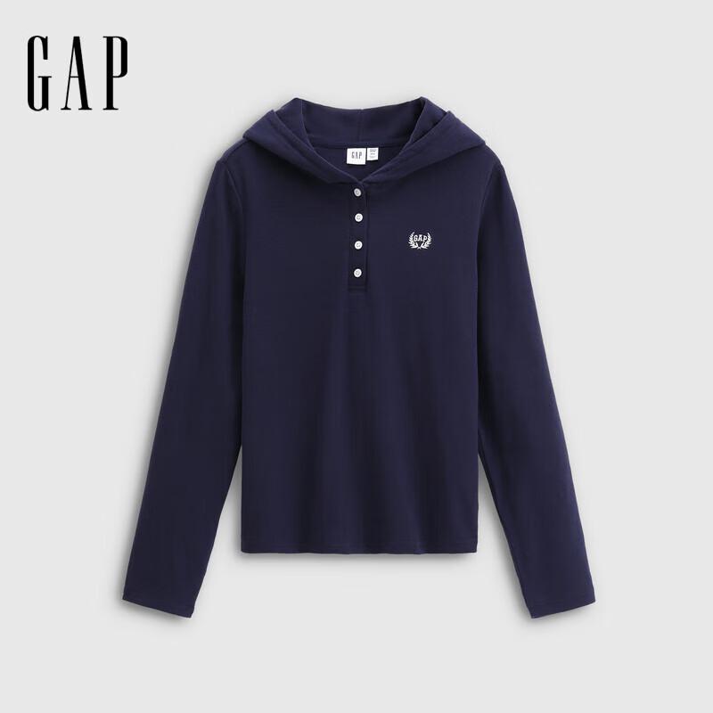 Discover the Gap Women's 2025 Fall collection with this casual Henley hooded sweatshirt. Featuring a stylish wheat ear embroidered logo, a classic Henley neckline, and comfortable regular fit, it's perfect for everyday wear.