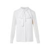 Langzi Women's White Tie-Neck Long Sleeve Blouse