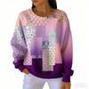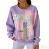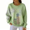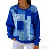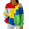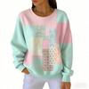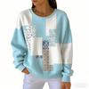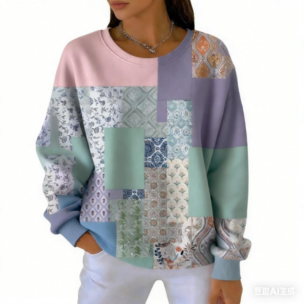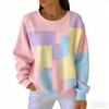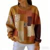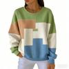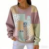 אופנת אביב שילוב צבעים חולצת טי לנשים קז'ואל הדפס וינטג' פולאובר לנשים בגדי שרוול ארוך קז'ואל בחוץ חולצות טי עליון