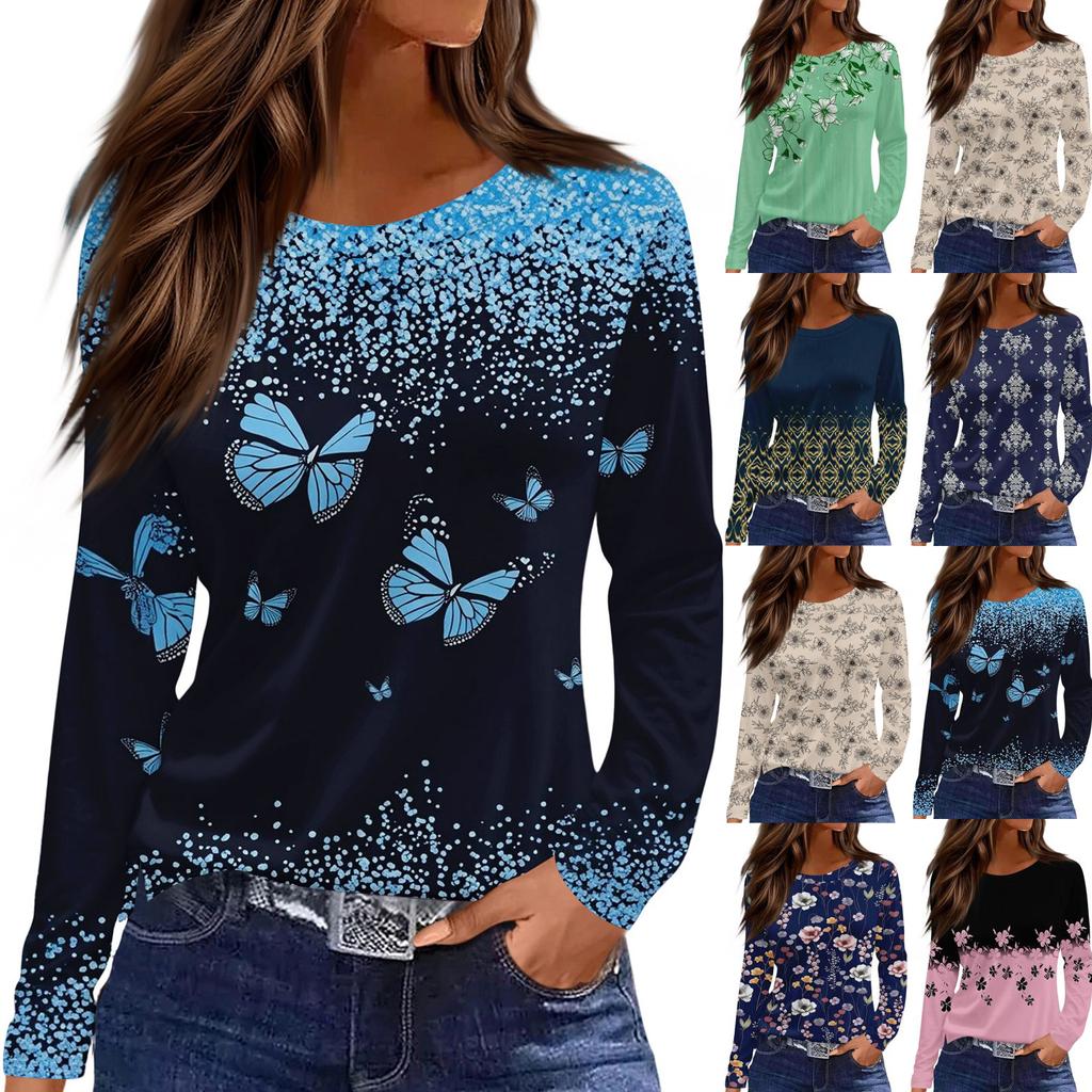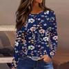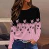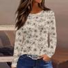 Women's Fashion Casual Slit Hem Round Neck Long Sleeve Loose Printed T-Shirt Ladies Top