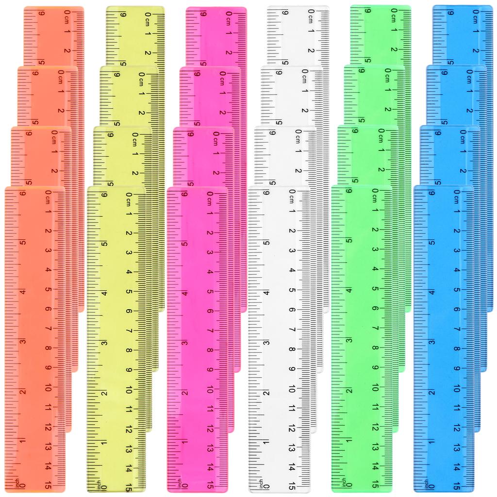 24Pcs Colorful Ruler Clear Plastic Rulers Clear Assorted Kids Measuring Straight Ruler With Inches Centimeters Millimeter Bulk B