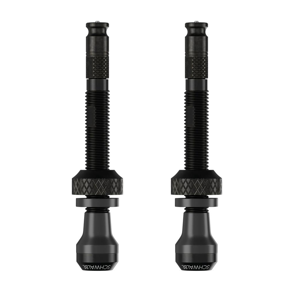 The SCHWALBE Click Valve (SCV) revolutionizes the bicycle industry, solving a problem that has existed for over 100 years. This valve operates with one hand, allowing for easy inflation with a simple click. Suitable for everyone, from beginners to experienced cyclists, the SCV tubeless valve increases air flow by 50% over conventional tubeless valves. Note: The SCV can also be inflated with a standard Presta pump.