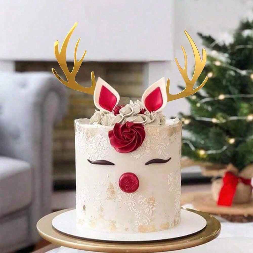 2pcs/set Gold Acrylic Deer Antler Cake Plug-in for Christmas New Year Birthday Party Cake Topper DIY Decoration Supplies