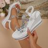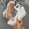 Rhinestone wedge sandals summer rhinestone flower decoration platform high heel large size fairy muffin shoes