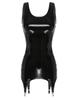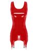 Glossy patent leather tank dress for women, sleeveless, u neck, slim fit highlights your body curve.