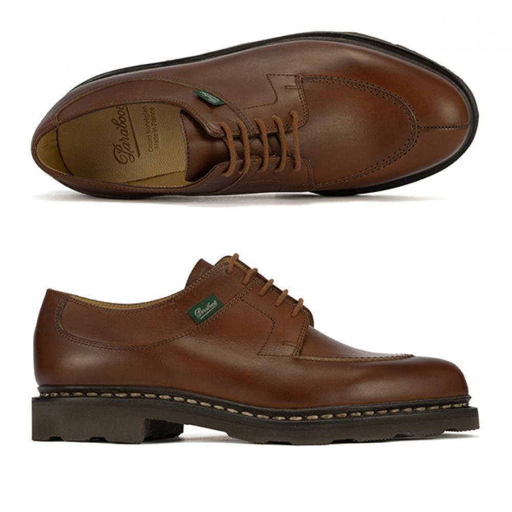 The Paraboot 7051 11 Avignon MARRON Split Toe Derby Shoes Loafers are crafted from refined brown cowhide. This loafer pairs well with various outfits in navy or beige, making it an ideal choice for a polished business look. The breathable cowhide reduces foot fatigue and offers exceptional durability for long-term use.