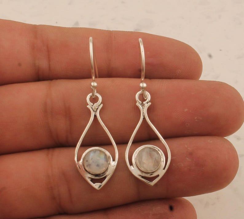 Solid 925 Sterling Silver Moonstone Gemstone Dangle Drop Earrings Women Gift Earring Handmade Jewelry