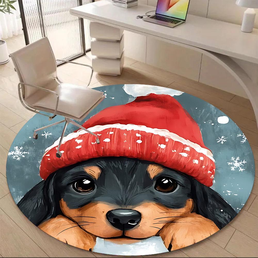 1pc Winter Pup Office Round Area Rug, Indoor Mat Suitable ForOffice, Under Office Chairs Bedroom Living Room Home Decor T196